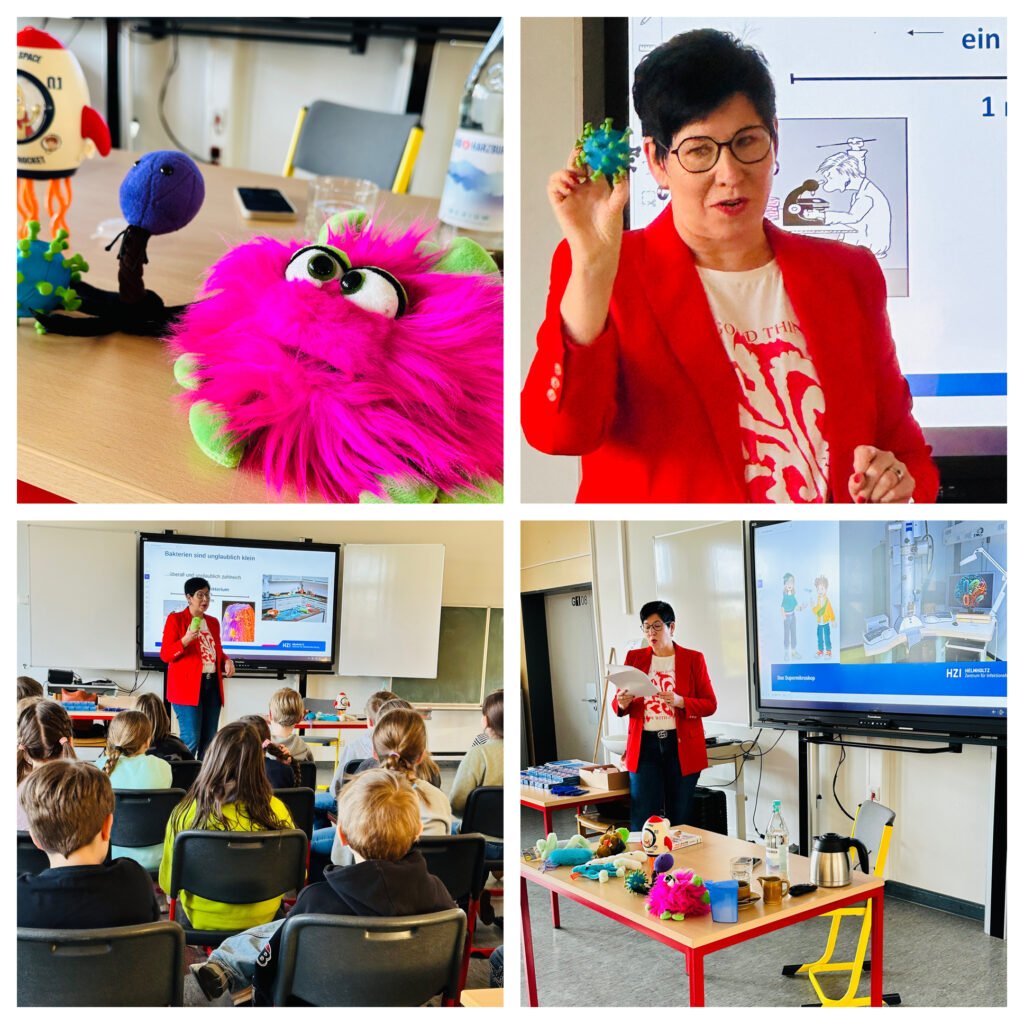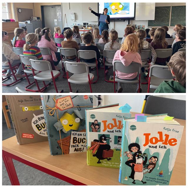 Die Autorinnen Katja Frixe (untere Collage) und Susanne Thiele (obere Collage) stellten spannende neue Kinderbücher vor. Bei der Geschichte von Theo und Mia ging es um verschiedenste Bakterien und Mikroorganismen.